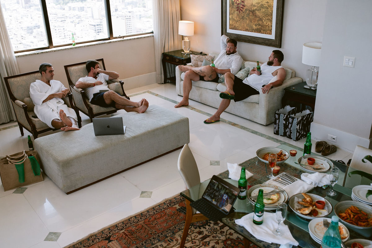 Bruna e Omar são a própria leveza. Não à toa, estão sempre cercados de amigos — amigos que cruzaram o planeta para compartilhar com eles esses dias no Rio.